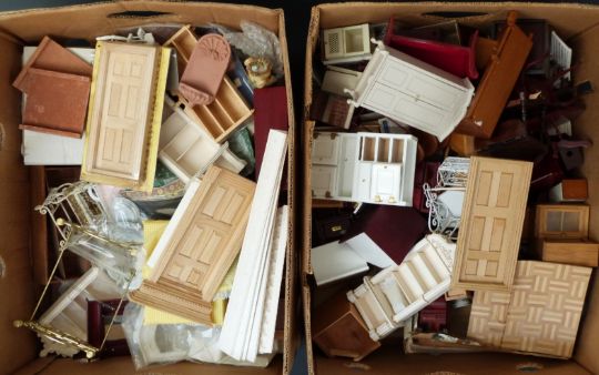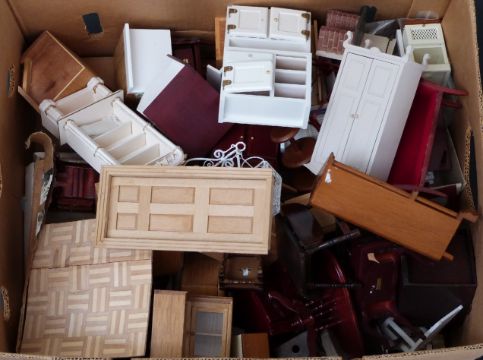 Wooden doll's house, width 66cm with a large quantity of furniture