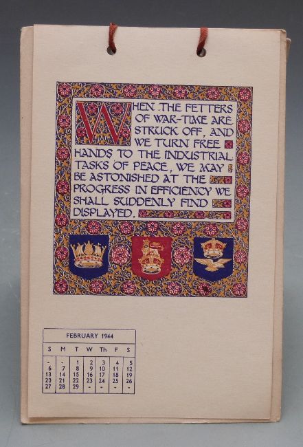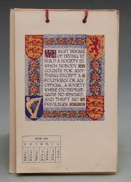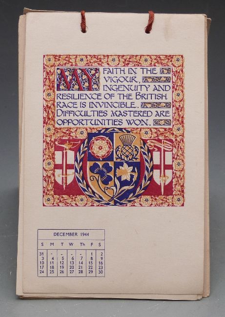 Winston Churchill calendar for 1944 'The Call to Britain', 18x13cm