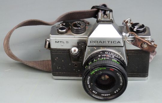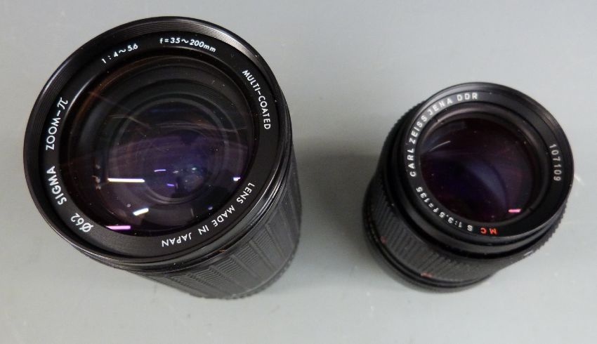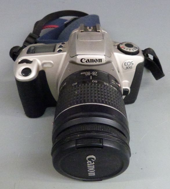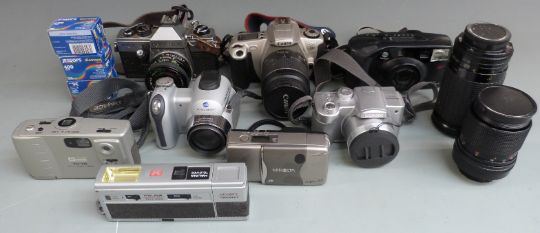 Quantity of cameras to include Praktica MTL5 with 1:2.8 28mm Pentavision lens, Carl Zeiss Jena 1:3.5 135mm, 1:4-5.6 35-200mm lenses, Lumix DMC-FZ5. Canon EOS 300 with 28-80mm 1:3.5-5.6 lens, Konica Minolta etc