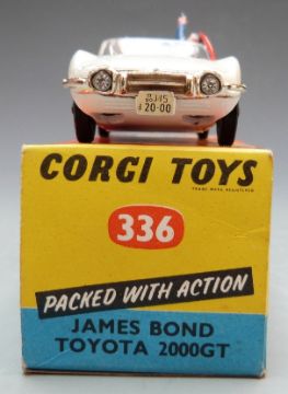 Corgi Toys diecast model James Bond Toyota 2000GT with white body, spoked hubs and figures, 336, in original box.