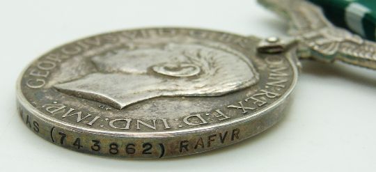 Royal Air Force Air Efficiency Award Medal (George VI) named to 743862 Cpl D I Thomas, RAFVR