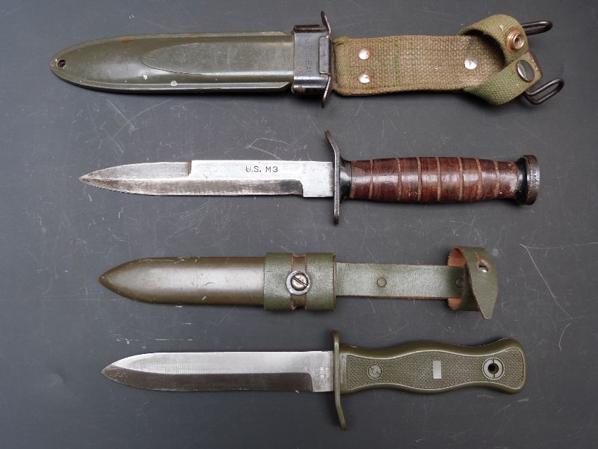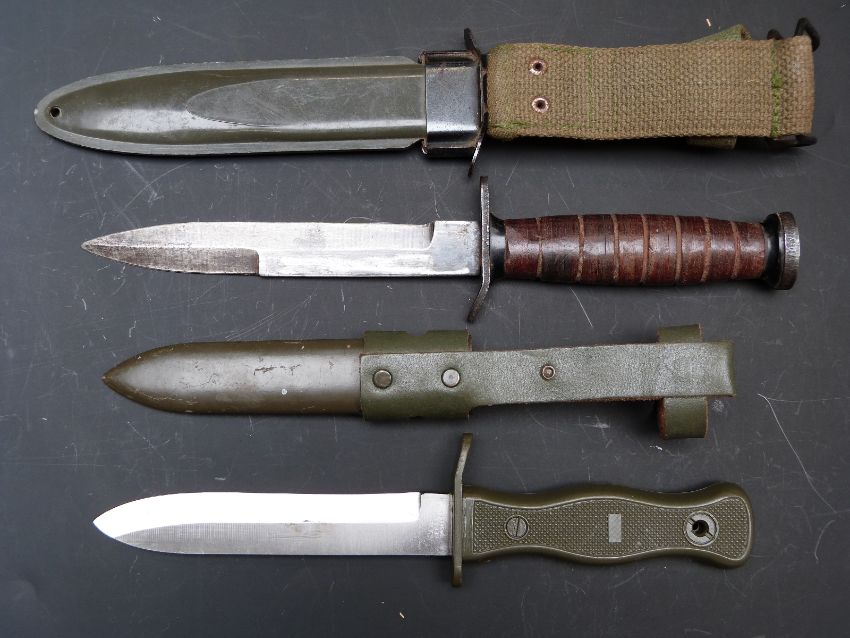 US M3 fighting knife, blade length 16cm, with sheath stamped US M8AI together with German Army example
