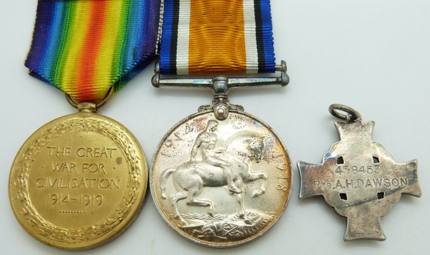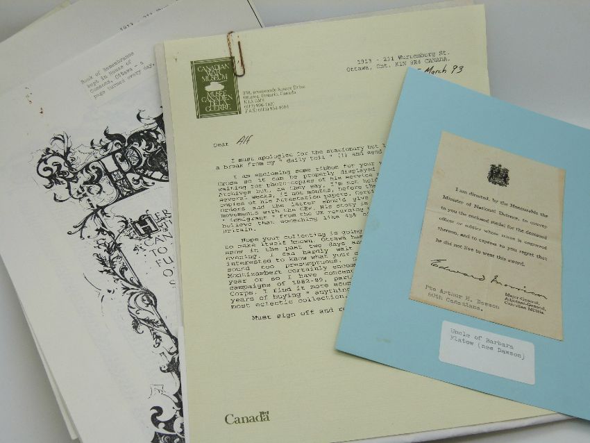 Canadian Army WWI medals comprising the War Medal, Victory Medal and silver Memorial Cross with paperwork