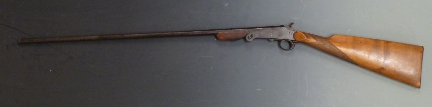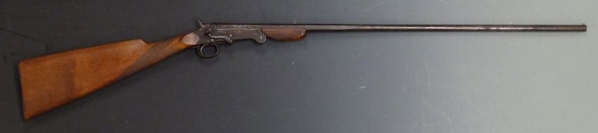 Belgian .410 folding hammer action shotgun with chequered grip and forend and 28 inch part octagonal barrel, overall length 110cm, serial number 103. PLEASE NOTE THAT A VALID RELEVANT FIREARMS/SHOTGUN CERTIFICATE IS REQUIRED TO HANDLE/PURCHASE THIS ITEM.