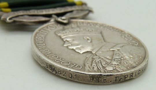 British Army Territorial Efficiency Medal (George VI) named to 3346201 Pte T Price, 5th Battalion The Loyal Regiment