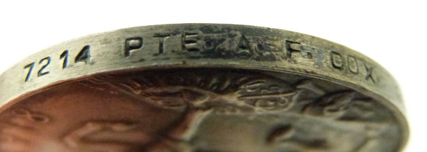 British Army WWI medals comprising War Medal and Victory Medal named to 7214 Pte A F Cox, Gloucestershire Regiment together with his Special Constabulary Medal (Frederick Cox)