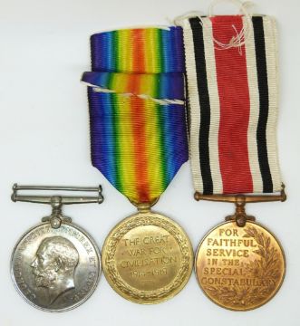 British Army WWI medals comprising War Medal and Victory Medal named to 224641 Gunner W B Usher, Royal Artillery together with his Special Constabulary Medal (Sgt Walter Usher)