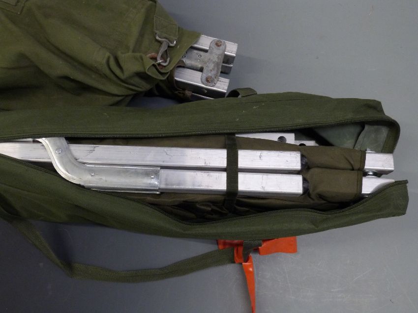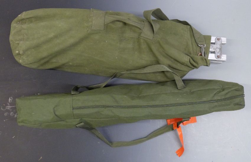 Two military aluminium framed collapsible camp beds with carry bags
