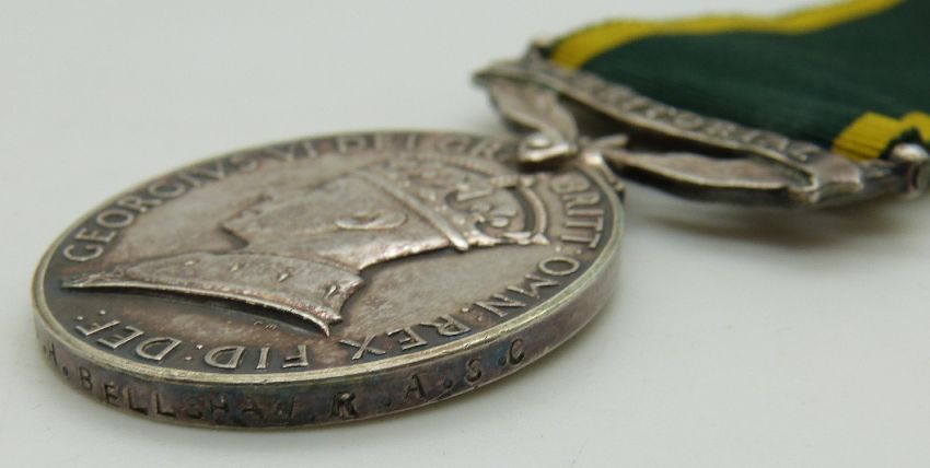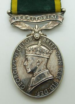 British Army Territorial Efficiency Medal (George VI) named to 81326 Sgt A D H Bellshaw, Royal Artillery