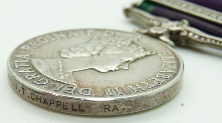 British Army General Service Medal with clasp for Northern Ireland named to 24214115 Gunner G T Chappell, Royal Artillery