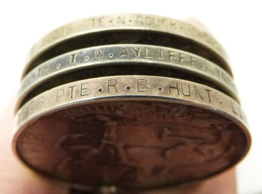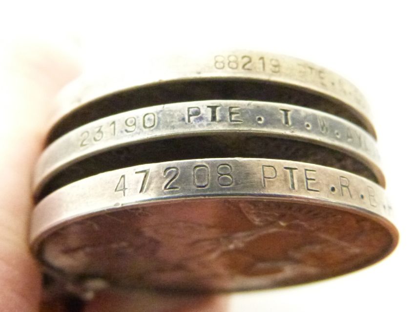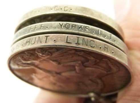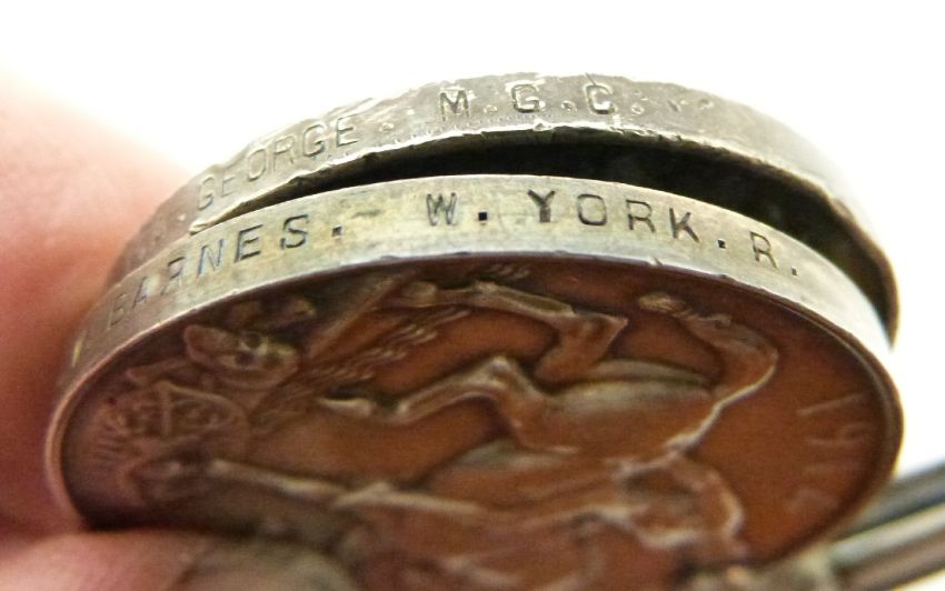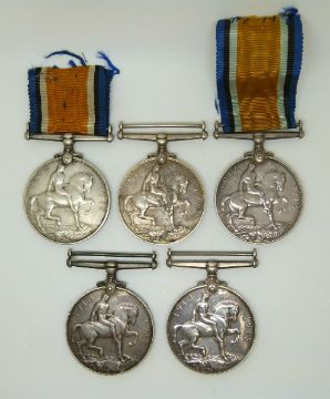 British Army WWI medals comprising five War Medals named to 52496 Sgt T A George MGC, 88219 Pte N Gough MGC, 57369 Pte J W Barnes West Yorkshire Regiment, 47208 Pte R B Hunt Lincolnshire Regiment, 23190 Pte T W Ayliffe Yorkshire Light Infantry
