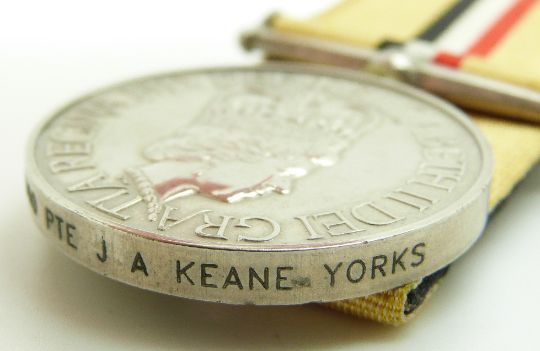 British Army Iraq Medal named to 2500660 Pte J A Keane, Yorkshire Regiment, with box