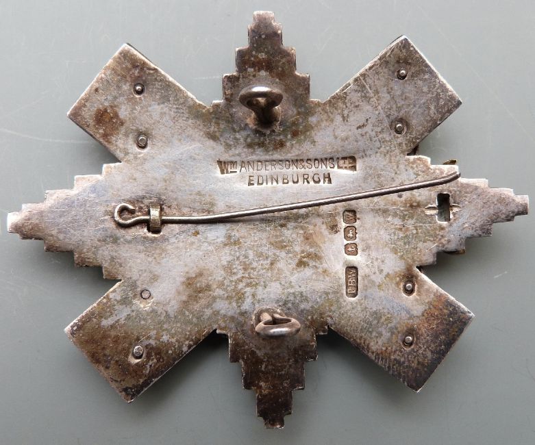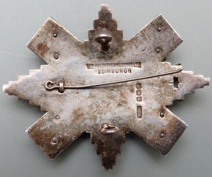Black Watch Regiment Officer's hallmarked silver cap badge, maker's mark for T B Wilkins, Birmingham 1921, retailed by William Andersons Ltd, Edinburgh