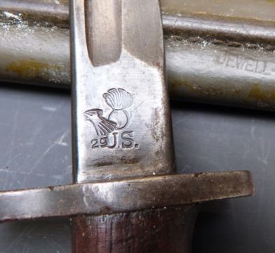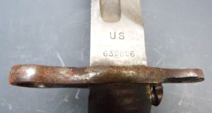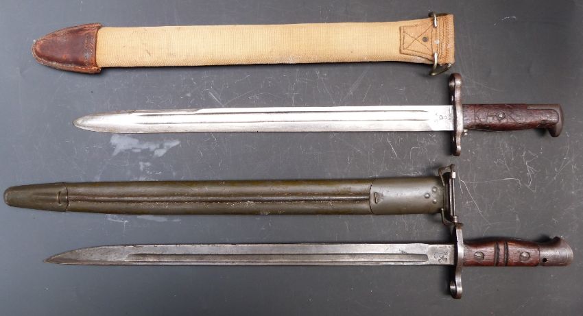 American Army M1905 bayonet with good stamp to 40cm blade, with scabbard and canvas outer cover, together with a M1917 example with good stamps and scabbard