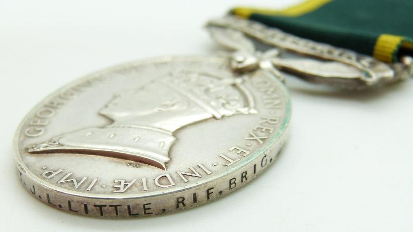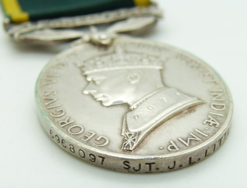 British Army Territorial Efficiency Medal (George VI) named to 6968097 Sgt J L Little, Rifle Brigade