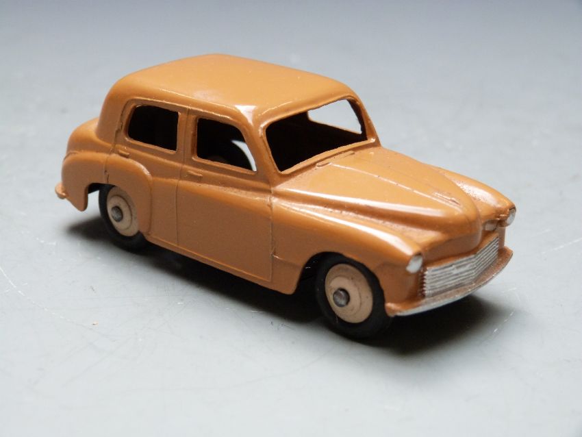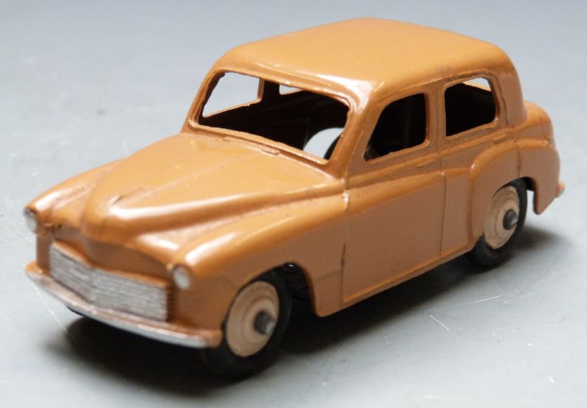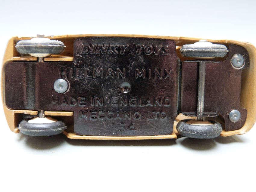 Dinky Toys diecast model Hillman Minx Saloon with brown body and cream hubs, 154, in original box.