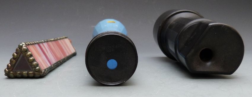 Three kaleidoscopes including an early metal and glass example using marbles.