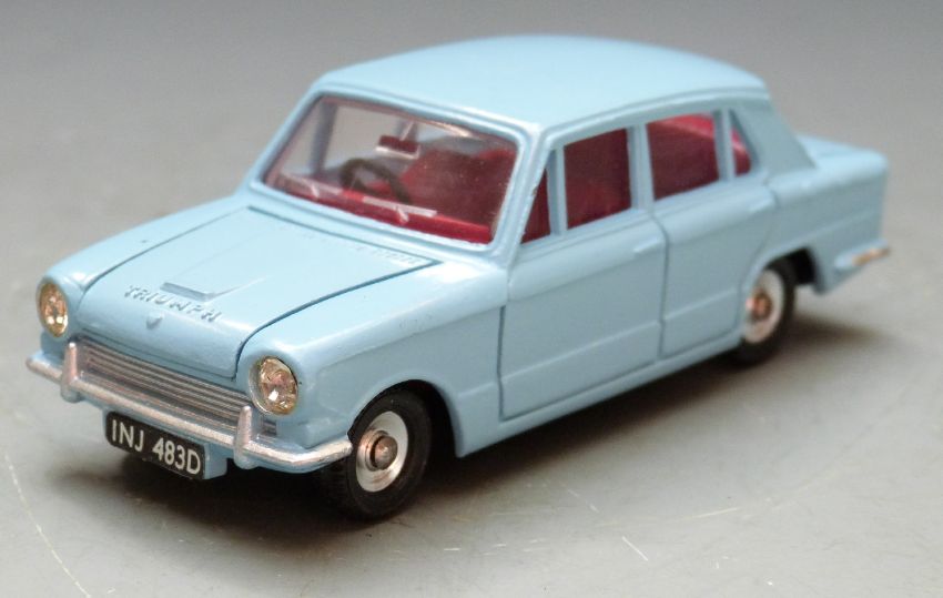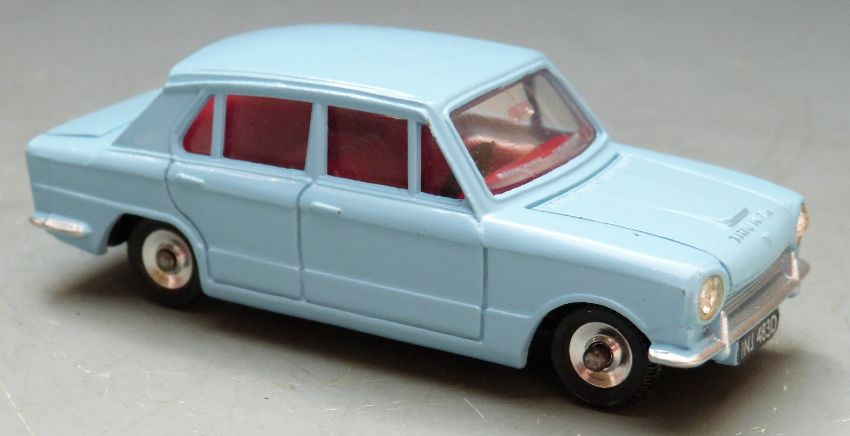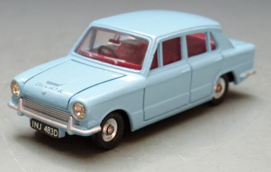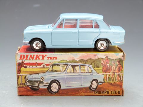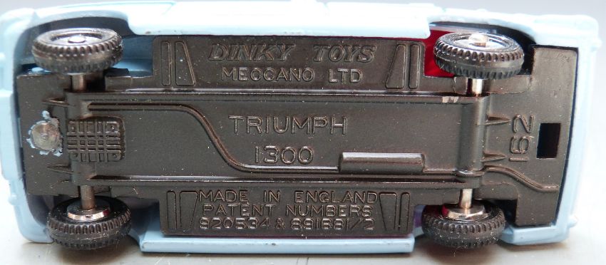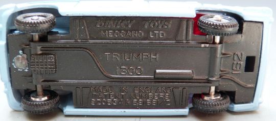 Dinky Toys diecast model Triumph 1300 with pale blue body and red interior, 162, in original box.