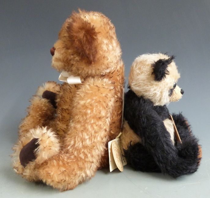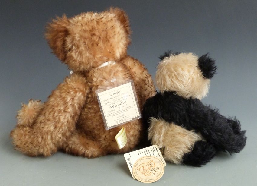 Two Teddy bears Dean's Rag Book Co Woodie, 44cm tall, limited edition 28 of 35 and Robin Rive Pan Pan 29cm tall, limited edition 190 of 300.