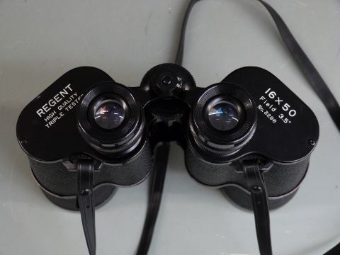 A Kershaw & Sons Leeds telescope, Regent 16x50 binoculars and a Zeiss Ikon Contina camera