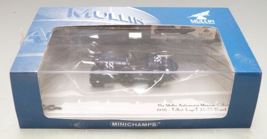 Two diecast model vehicles comprising Minichamps Paul's Model Art The Mullin Automotive Museum Collection 1936 Talbot-Lago T 26-55 Grand Prix and Elite Hot Wheels 1:18 scale limited edition 250 LM 12 Hours of Reims 1964 T6261, both in original boxes.