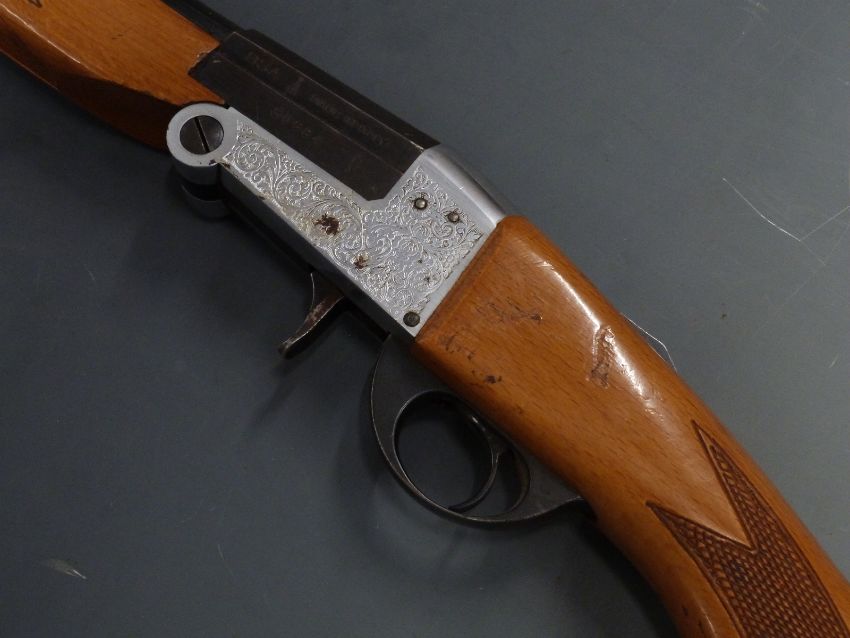 BSA 12 bore single barrelled folding poacher's shotgun with chequered semi-pistol grip and forend, engraved locks and top plate, 28 inch barrel choked ½, overall length 114cm, length of pull 36cm, serial number 50684 PLEASE NOTE THAT A VALID RELEVANT FIREARMS/SHOTGUN CERTIFICATE IS REQUIRED TO HANDLE/PURCHASE THIS ITEM.