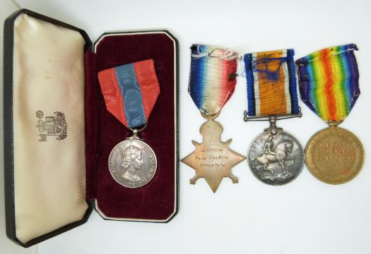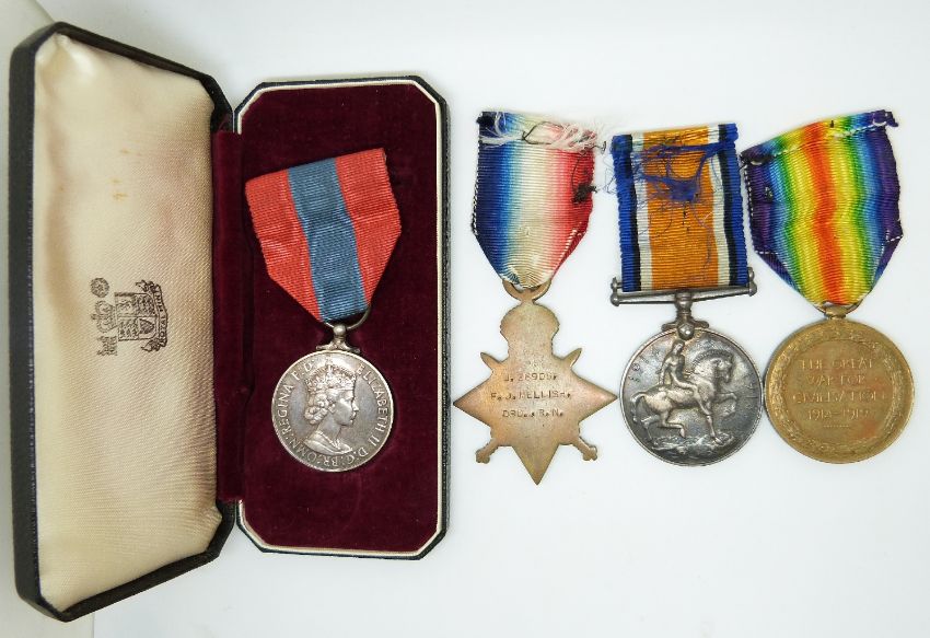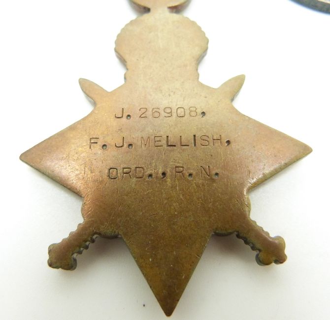 Royal Navy WWI medals comprising 1914/1915 Star, War Medal and Victory Medal named to 26908 F J Mellish, RN together with his Imperial Service Medal (Frederick James)