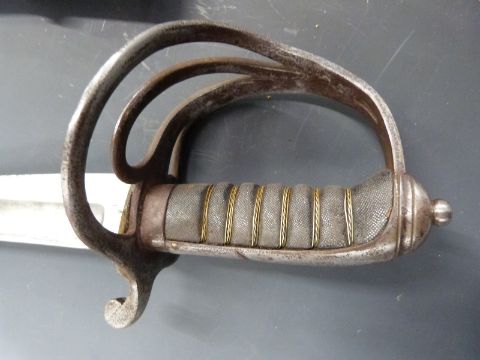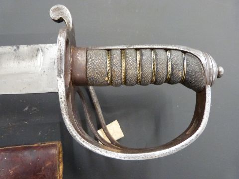 British Army 1910 pattern Indian Army Cavalry sword by Wilkinson, blade length 80cm, with leather scabbard