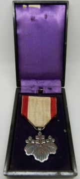 Japanese WWII medal Order of the Rising Sun 8th class, in original case (solid silver)