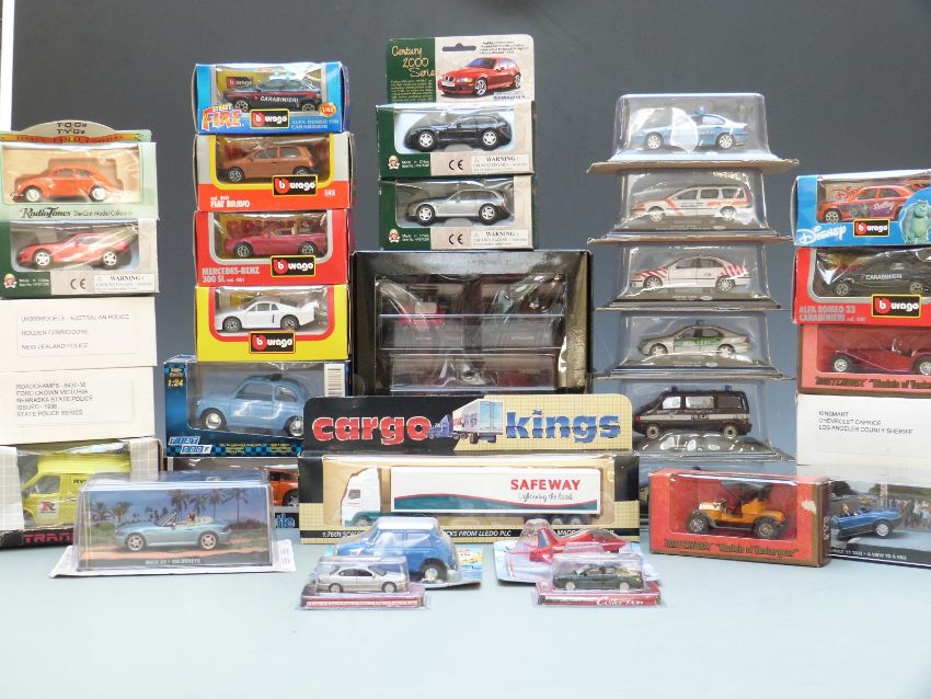 Thirty-four various diecast model vehicles including Fiat, Century 2000, James Bond Aston Martin etc, all in original boxes.