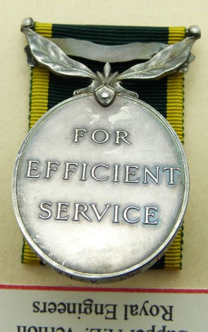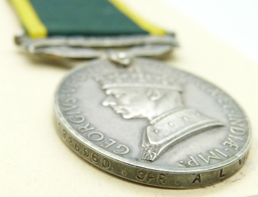 British Army Territorial Efficiency Medal (George VI) named to 986960 Sapper A L Vernon, Royal Engineers