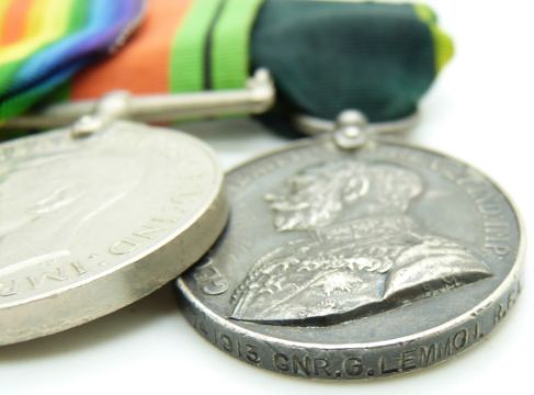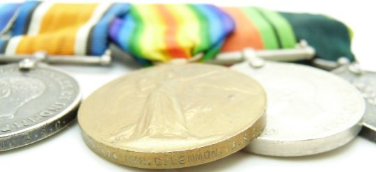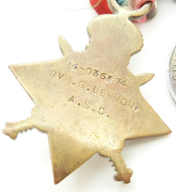 British Army WWI medals comprising 1914/1915 Star, War Medal and Victory Medal named to 036374 Driver G Lemon, Army Service Corps together with his WWII Defence Medal and Territorial Efficiency Medal (741913 Gunner G Lemmon RFA)