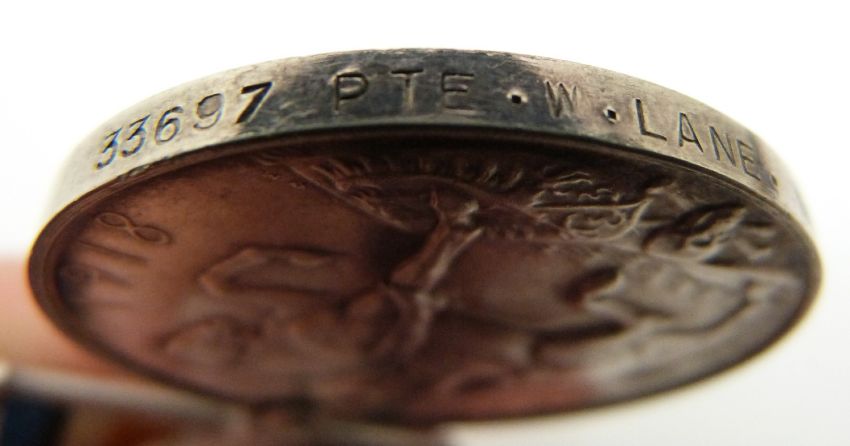British Army WWI medals comprising War Medal and Victory Medal named to 33697 Pte W Lane, Northamptonshire Regiment