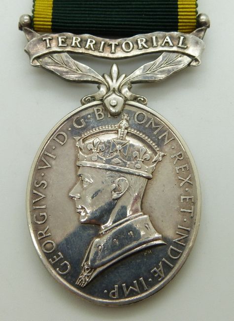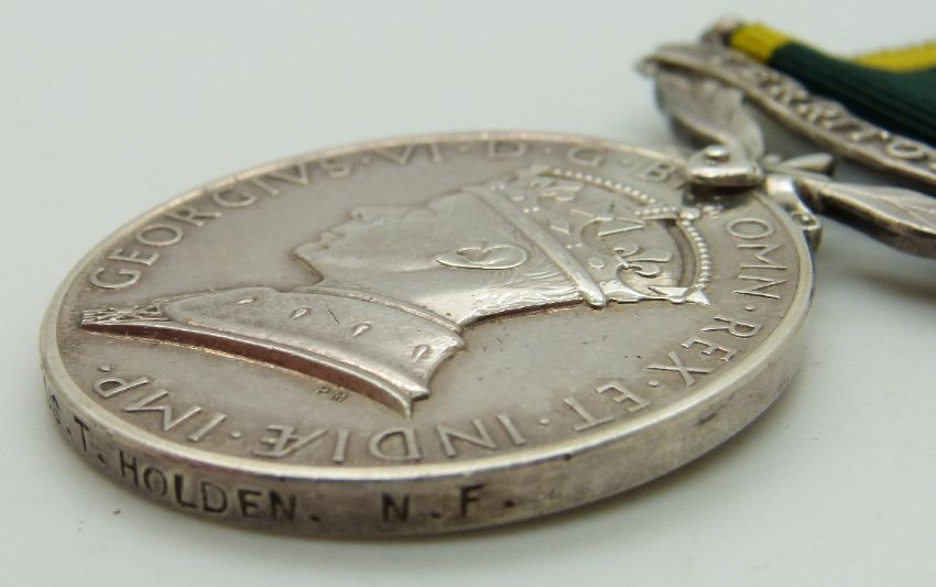 British Army Territorial Efficiency Medal (George VI) named to 4272280 Fusilier T Holden, Northumberland Fusiliers