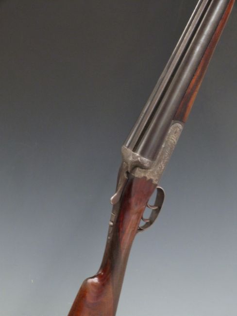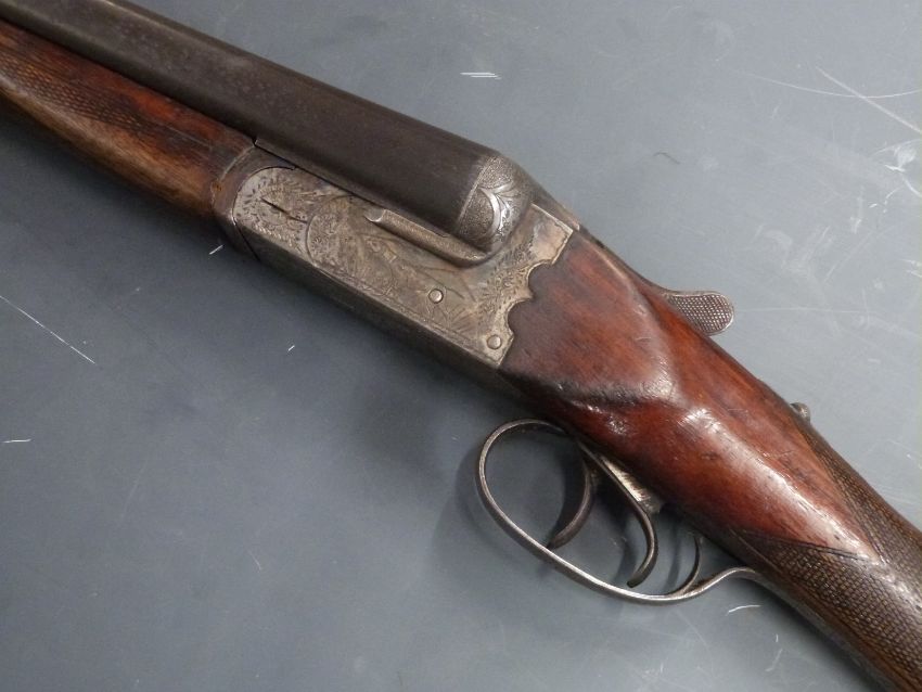 Ugarteburu 12 bore side by side shotgun with engraved lock, trigger guard, underside and top plate, chequered grip and forend, double trigger and named 28 inch barrels, overall length 113.4cm, serial number 40127.  PLEASE NOTE THAT A VALID RELEVANT FIREARMS/SHOTGUN CERTIFICATE IS REQUIRED TO HANDLE/PURCHASE THIS ITEM.