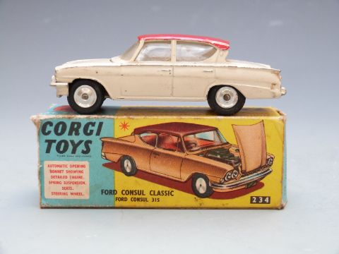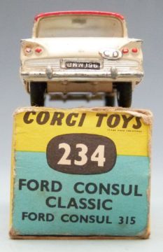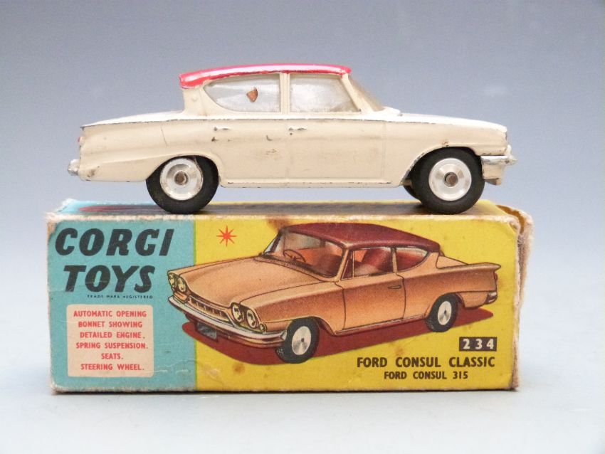 Corgi Toys diecast model Ford Consul Classic 315 with cream body and pink roof, 234, in original box.
