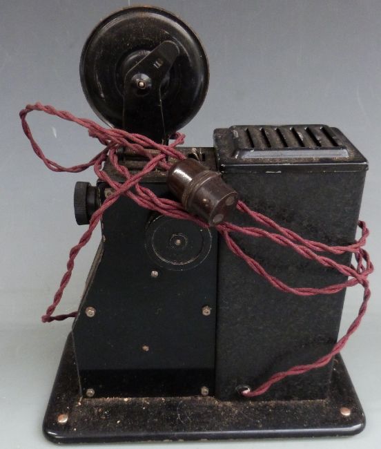 Pathescope 9.5mm projector with films including Launching the Queen Mary, Eyes Front, P-aint Fair and Footing the Bill