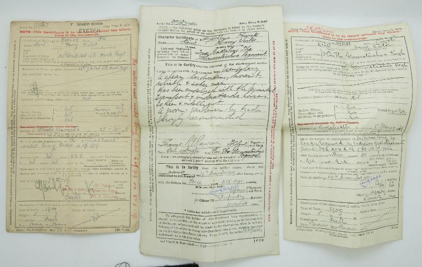 WWI medal named to 21858 Pte M Cracknell, Essex Regiment and documentation for H V Kent, Gloucestershire Regiment etc