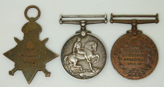 British Army WWI medals comprising 1914/1915 Star, named to 18047 Pte R Weston, Wiltshire Regiment together with a War Medal named to 5290 Pte W V Crocker, Devon Regiment and his Territorial War Medal (text on reverse for Voluntary and Overseas erased) for 2431 W V Crocker