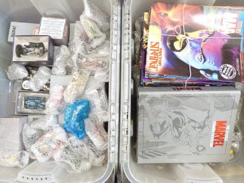One-hundred-and-five Eaglemoss The Classic Marvel Figurine Collection action figures, some special edition, some in original boxes, each with a related magazine.