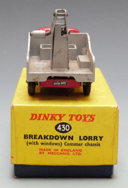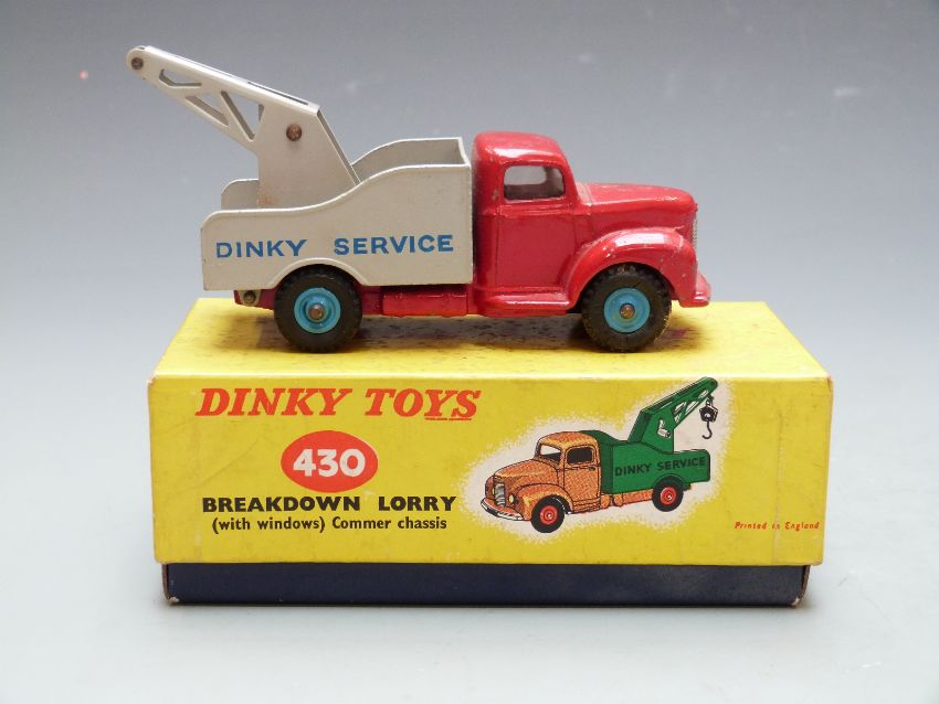 Dinky Toys diecast model Breakdown Lorry with red body, grey bed and crane, blue hubs and Dinky Service decals, 430, in original box.