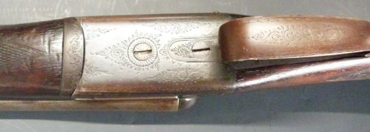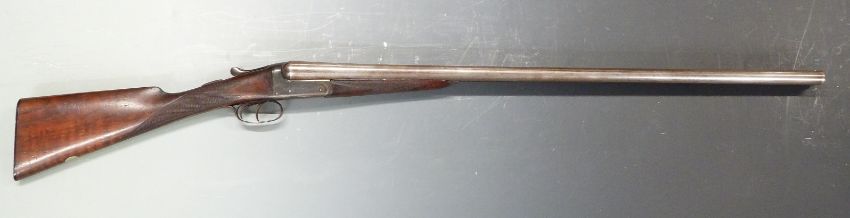 Ben Evans & Co 12 bore side by side shotgun with named and engraved lock, engraved trigger guard, underside and top plate, chequered grip and forend, vacant cartouche to the underside of the stock, double trigger and 30 inch barrels, overall length 116cm, serial number 3139.  PLEASE NOTE THAT A VALID RELEVANT FIREARMS/SHOTGUN CERTIFICATE IS REQUIRED TO HANDLE/PURCHASE THIS ITEM.