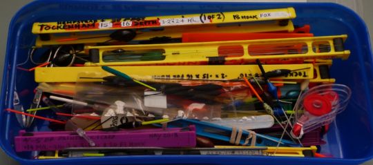 Large collection of mainly coarse fishing accessories including pole floats, weights, line, multisectional boxes etc