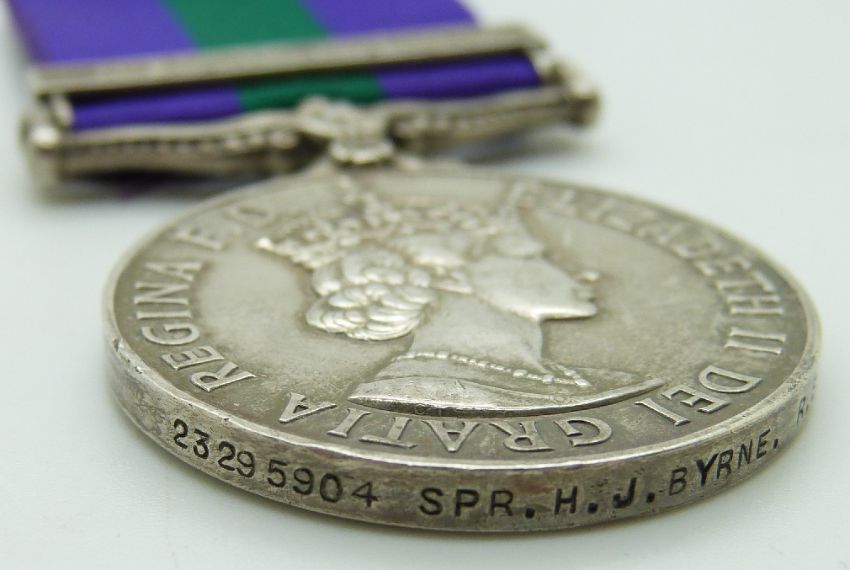 British Army General Service Medal with clasp for Near East, named to 23295904 Sapper H J Byrne, Royal Engineers