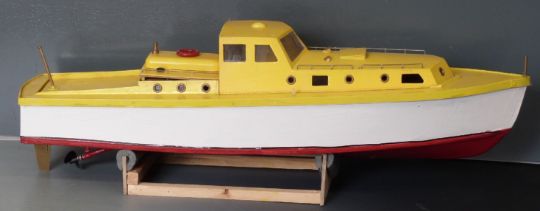 Model remote control boat of a Halvorsen 38ft seaplane tender with electric motor, length 95cm.