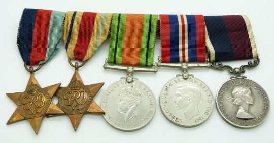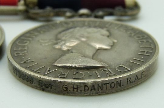Royal Air Force WWII medals comprising 1939/1945 Star, Africa Star, Defence Medal, War Medal and Long Service & Good Conduct Medal named to 573689 Sgt G H Danton
