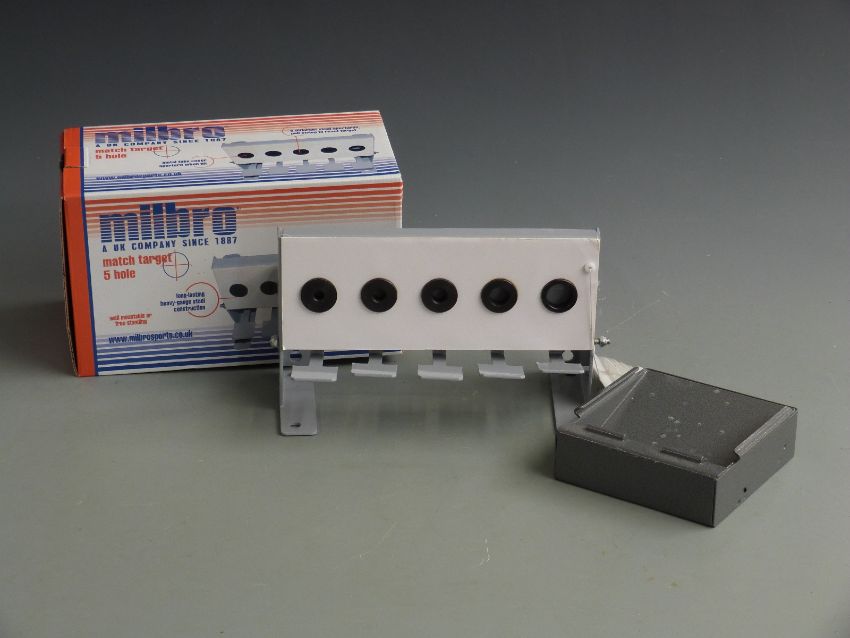 Milbro 5 hole air rifle match target and shot collector, in original box.