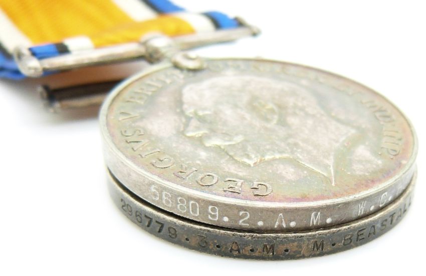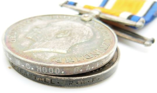 Royal Air Force WWI medals comprising two pairs of War Medal and Victory Medals named to 296779 A M Beastall RAF and 56809 W C Hood, RAF