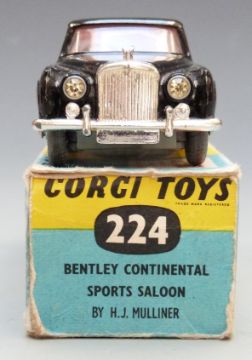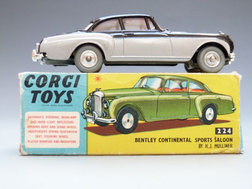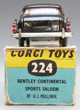 Corgi Toys diecast model Bentley Continental Sports Saloon By H.J. Mulliner with black and silver body and red interior, 224, in original box.