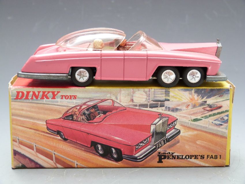 Dinky Toys diecast model Lady Penelope's FAB1 with pink body and Parker, 100, in original box.